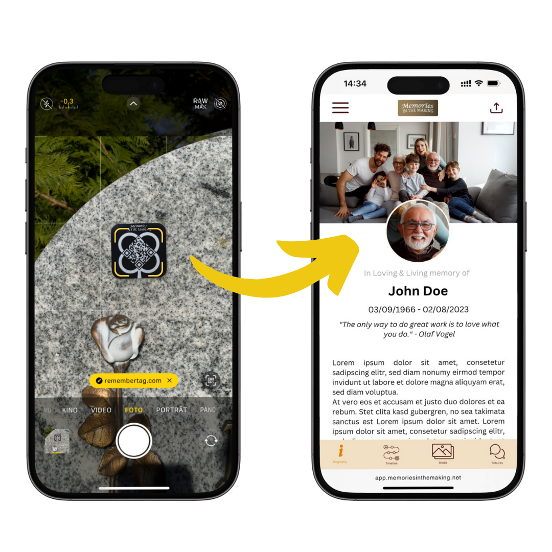 MemorialTag helps keep memories of loved ones alive forever. Just a scan shows their stories, photos and timeline of their life.